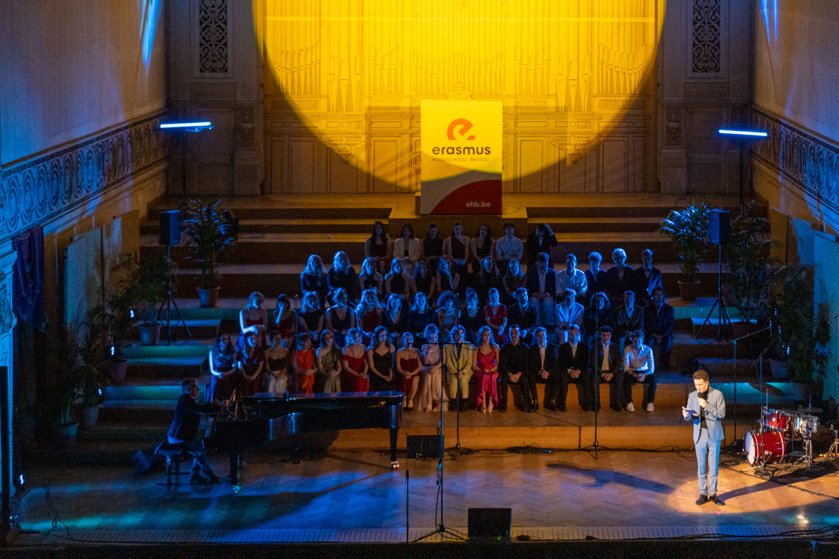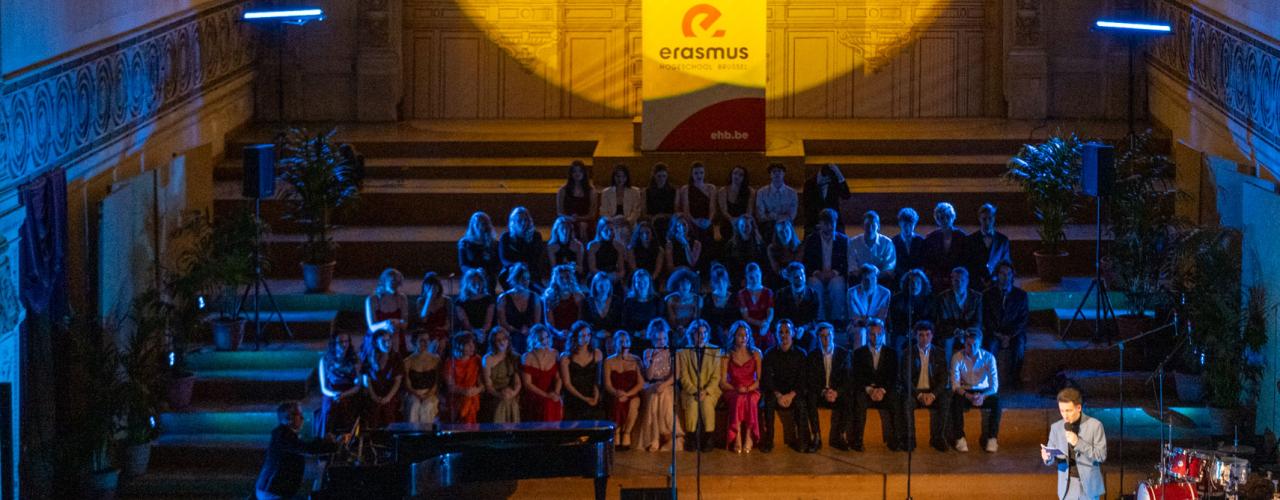 Despite the cold temperatures, it was a warm evening thanks to the performances by the KCB-EhB students, the speech by the general director, Dennis Cluydts, and all this gracefully tied together thanks to our host and Master Musical student, Ian Schelfaut.